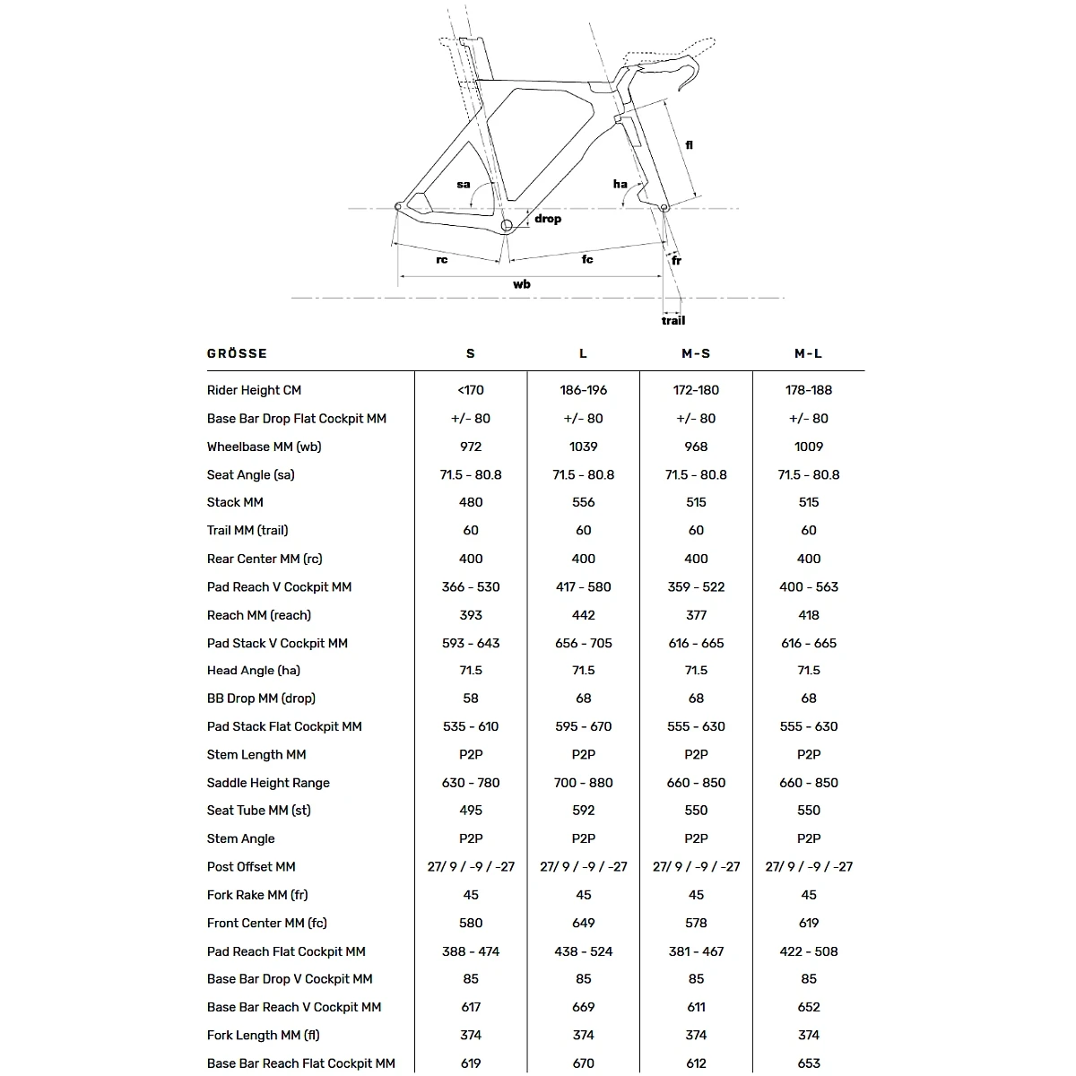 - Gewicht: Framemaat (S-M) 1300g, vork 425g
