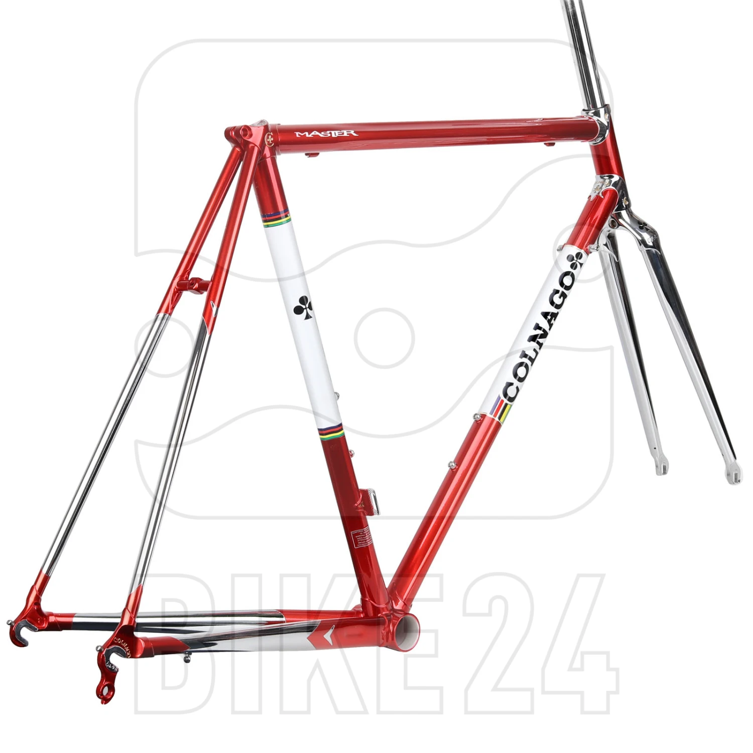 Het Master-frame wordt nog steeds volledig in Italië gebouwd en blijft gemaakt van de beroemde Colnago DT15V stalen buizen, met hun onderscheidende stervormige buisdoorsneden. De verchroomde op maat gemaakte microfusie stalen lugs en de innovatieve 1″ Precisa stalen vork garanderen de hoogste kwaliteit en ongeëvenaard comfort.