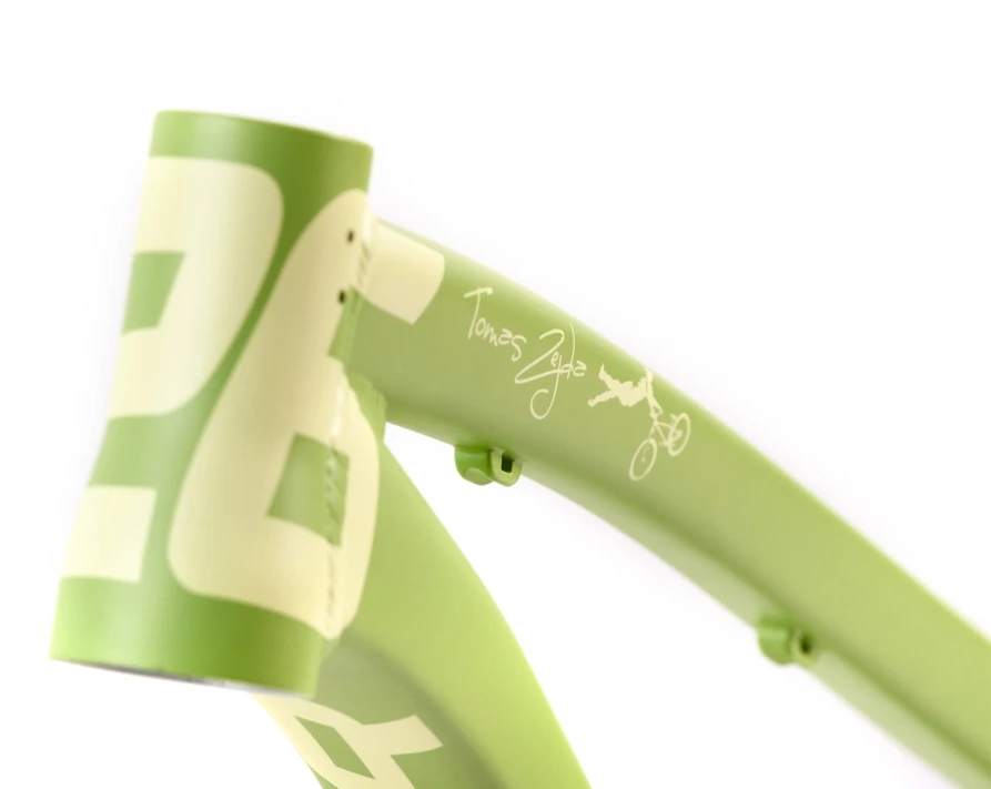 Een van de best verkopende dirt jump frames op aarde is zojuist nog beter geworden! Na 6 jaar sinds het laatste complete herontwerp en meer dan 16 jaar sinds het begin van zijn nalatenschap, gaat de naar de beurs! Een van de weinige rijders die alle generaties van de Two6Player heeft meegemaakt is Dartmoors jarenlange vriend en rijder – Tomas Zejda. Tomas heeft over de hele wereld talloze medailles gewonnen met de Two6Player en heeft in de loop der jaren geholpen bij de ontwikkeling ervan. Om zijn toewijding aan dirt jumping te eren, is Dartmoor verheugd om van de Two6Player Pro zijn signature frame te maken! Voor 2023 is het frame voorzien van een geïntegreerde kettingspanner in opnieuw ontworpen uitvaleinden, een Gyro-Ready balhoofdbuis en een robuuste seatstay brug, terwijl het geheel meer dan 100g lichter is!
