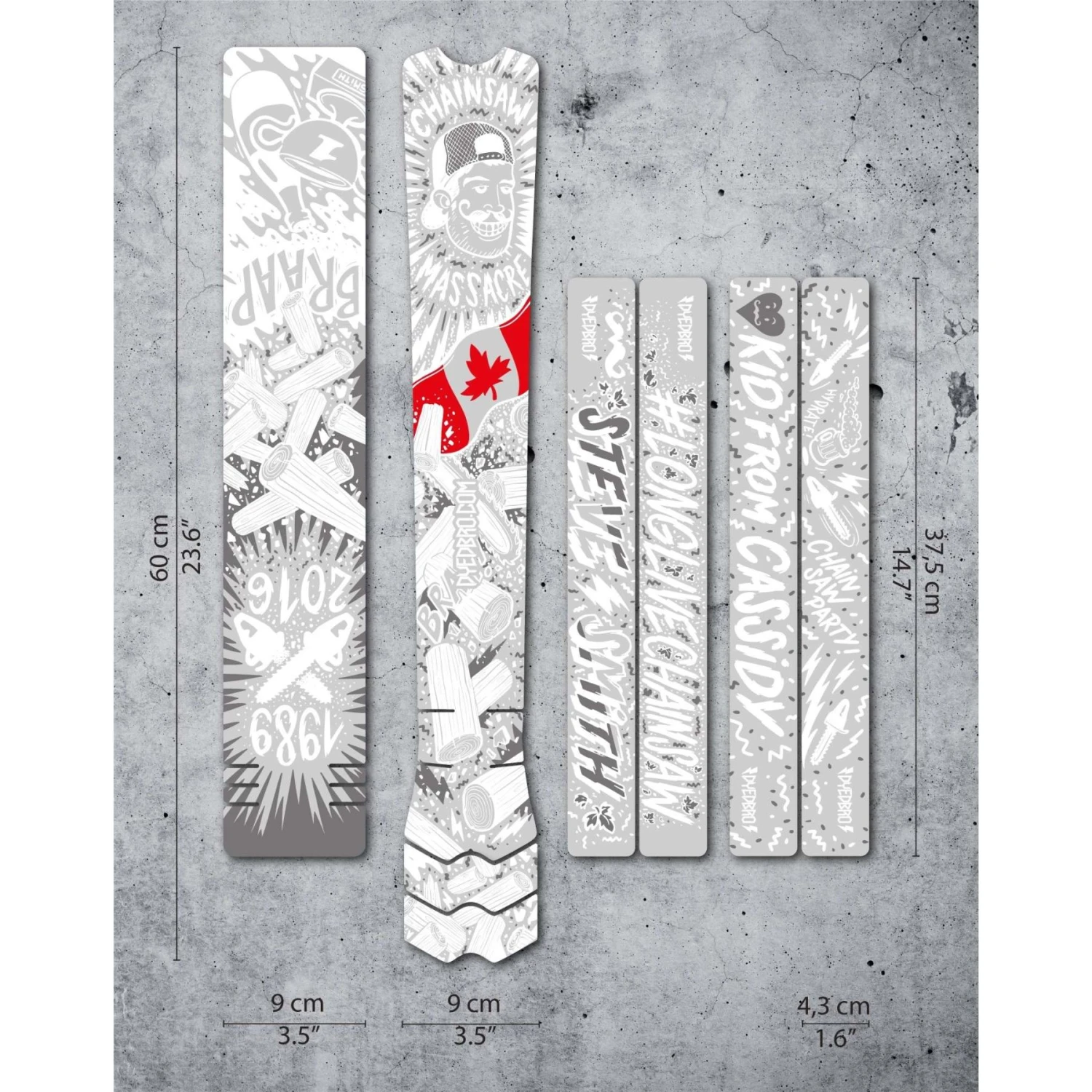 Steve Smith, geboren in Cassidy, British Columbia, was waarschijnlijk de meest productieve en invloedrijke Canadese downhill racer. Ambitieuze atleet en felle concurrent, maar altijd bescheiden en met beide benen op de grond. Hij heeft een opmerkelijke invloed gehad op alle jonge en aspirant Canadese gravity racers en nog veel meer over de hele wereld. Daarom heeft Dyedbro ter ere van zijn carrière deze zeer speciale framebeschermer gemaakt. Het zal ook geld inzamelen voor de Stevie Smith Legacy Foundation. 5% van de verkoopprijs wordt gedoneerd met als doel 1.000 Canadezen te bereiken tegen 11 mei 2020. Na die datum worden de donaties voortgezet.