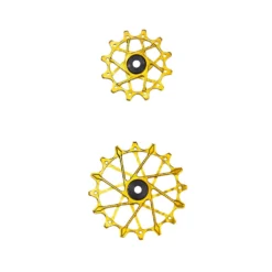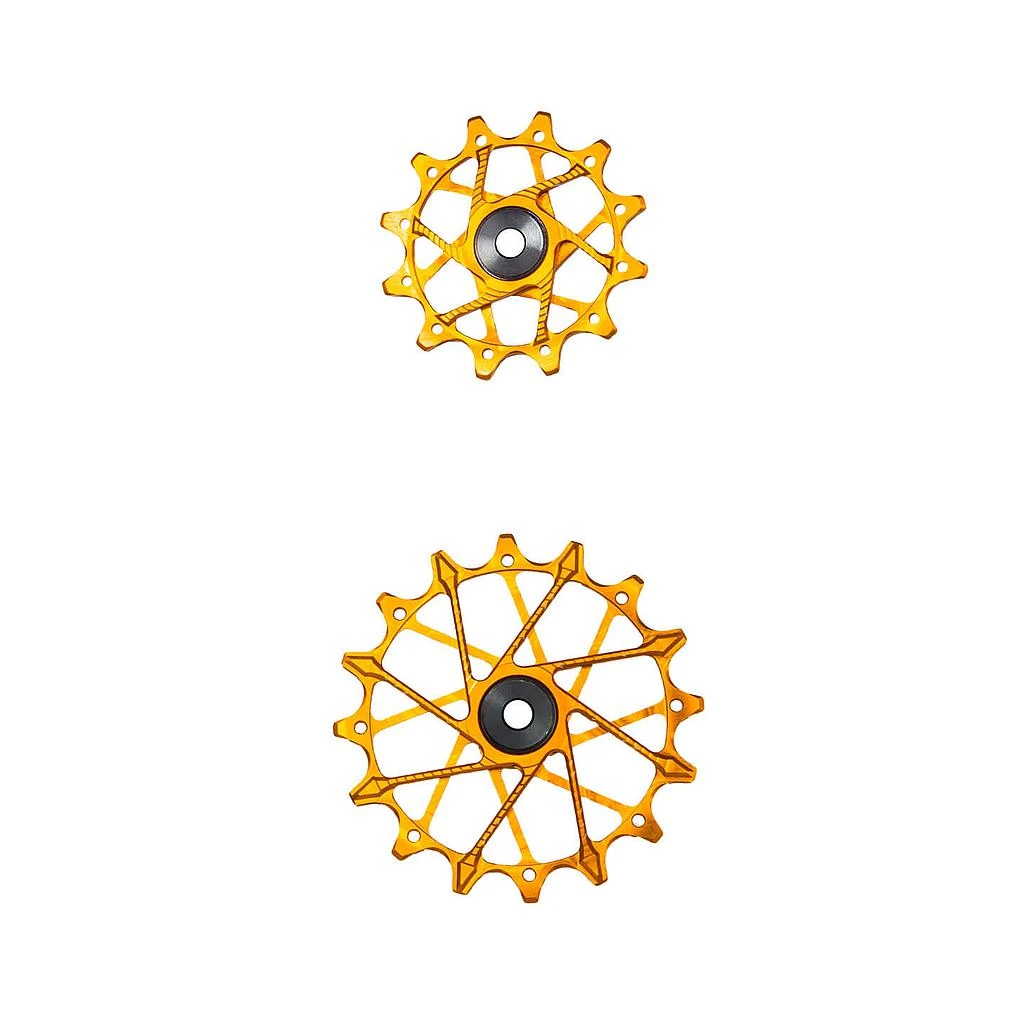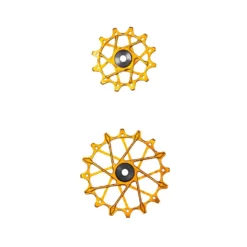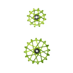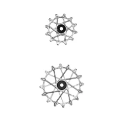 De Garbaruk schakelwalsen hebben een bijzondere uitstraling dankzij het uitgebreide freeswerk. Bovendien zijn ze gemaakt van aluminium voor een bijzonder laag gewicht en garanderen de dubbel afgedichte stalen lagers een lange levensduur. Een ander bijzonder kenmerk van deze achterderailleurpoelies is het smalle, brede tandprofiel, dat zich al heeft bewezen op kettingbladen, waardoor de ketting betrouwbaar wordt geleid en het schakelen nog soepeler verloopt.