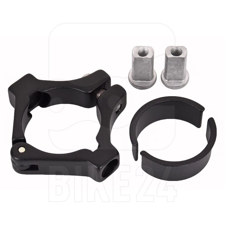 Klem voor montage van onderbuisschakeling op frames zonder gesoldeerde bussen. Compatibel met Shimano 9/10-speed shifters. Diameter van 31,8 mm incl. 28,6 mm vulplaatjes.