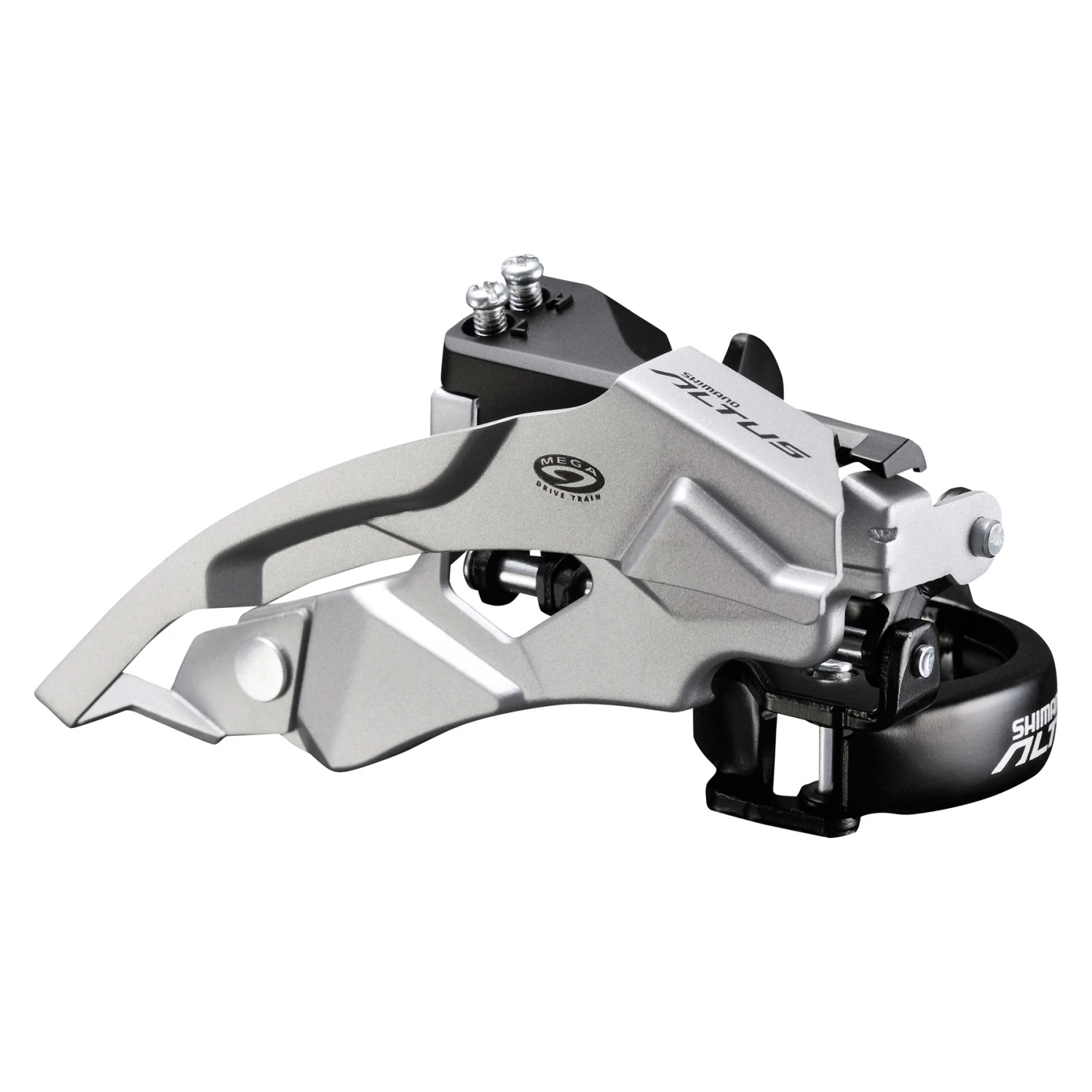 De Altus FD-M370 voorderailleur is voorzien van Dual-Pull technologie, die kabelkoppeling van boven en onder mogelijk maakt. Verchroomde stalen schotten maken de voorderailleur robuust.