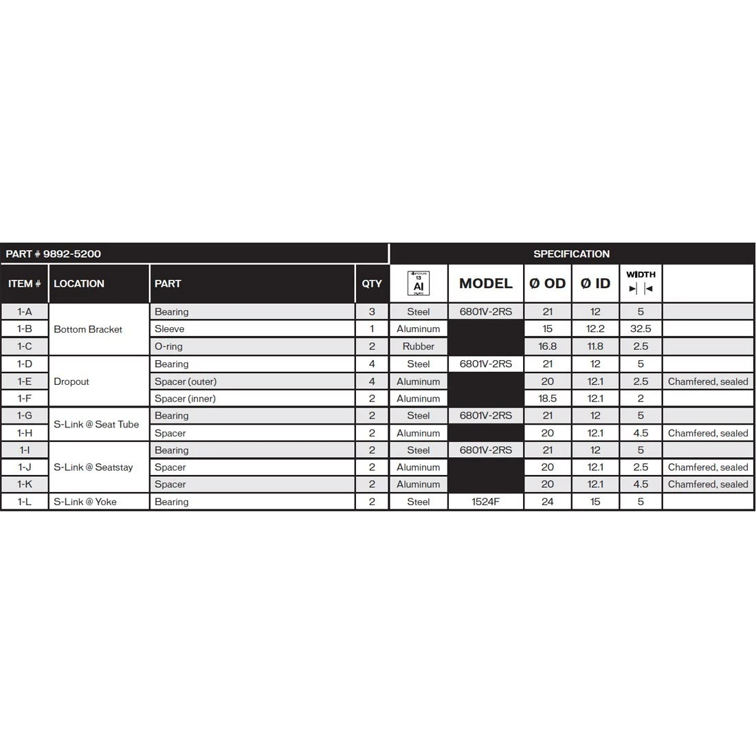 | Productnaam | Specialized S160600004 bearing kit for all Levo Models 2016/2017 |