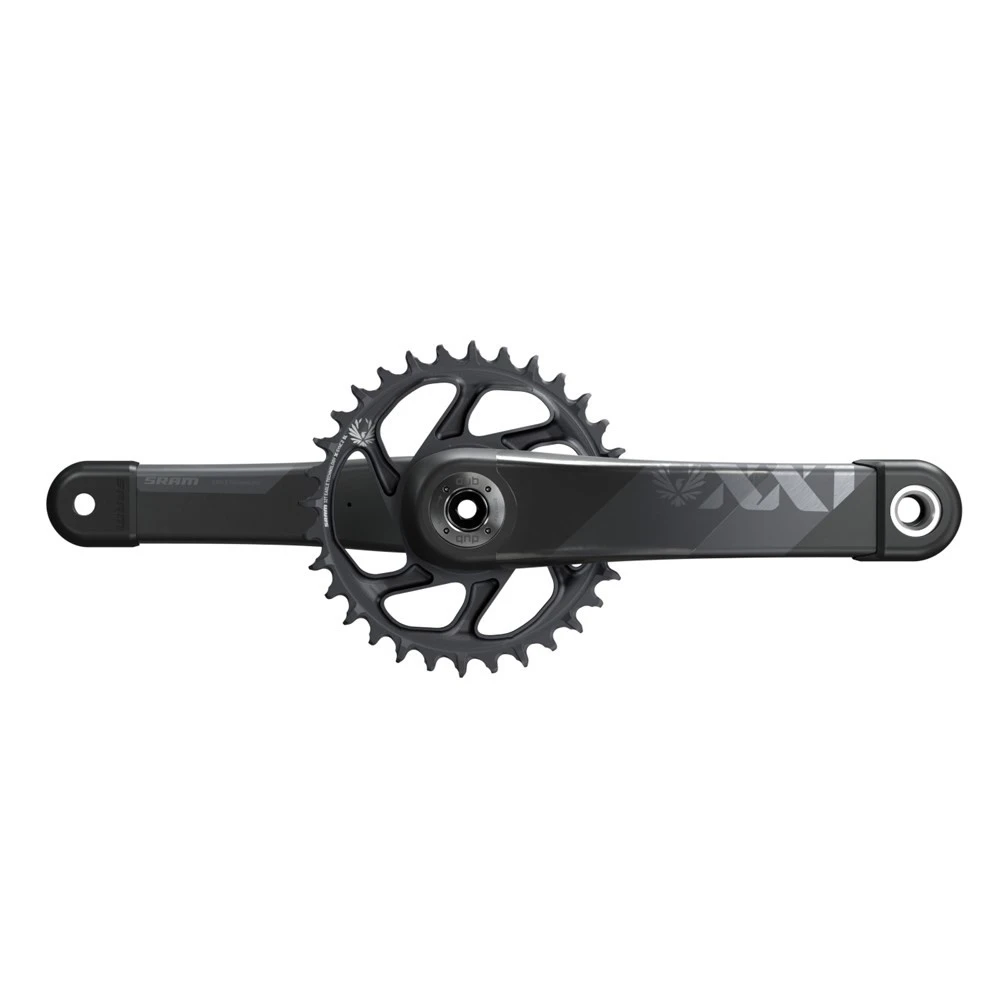 In de competitie telt elk klein voordeel – een niet aflatende jacht naar lichter, stijver en duurzamer materiaal. Om de best mogelijke schakelgroep te ontwikkelen, heeft SRAM de crankset volledig opnieuw ontworpen. Het XX1 Eagle™ crankstel is een van de lichtste, stijfste en sterkste op de markt. Het holle ontwerp en de speciale CARBON TUNED™ laminaattechnologie besparen niet alleen gewicht; deze cranks zijn perfect om het laatste grammetje prestaties eruit te halen. Met het Eagle™ Direct Mount kettingblad vormt deze crank het hart van de Eagle™ aandrijving voor meer vermogen. De DUB (Durable Unified Bottom Bracket) krukas, die universeel kan worden gebruikt in alle standaard carters, verhoogt ook de stijfheid. De lagerspeling wordt ingesteld via een stelring.