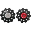 Hoogwaardige 7075 aluminium derailleurwieltjes met afgedichte lagers.