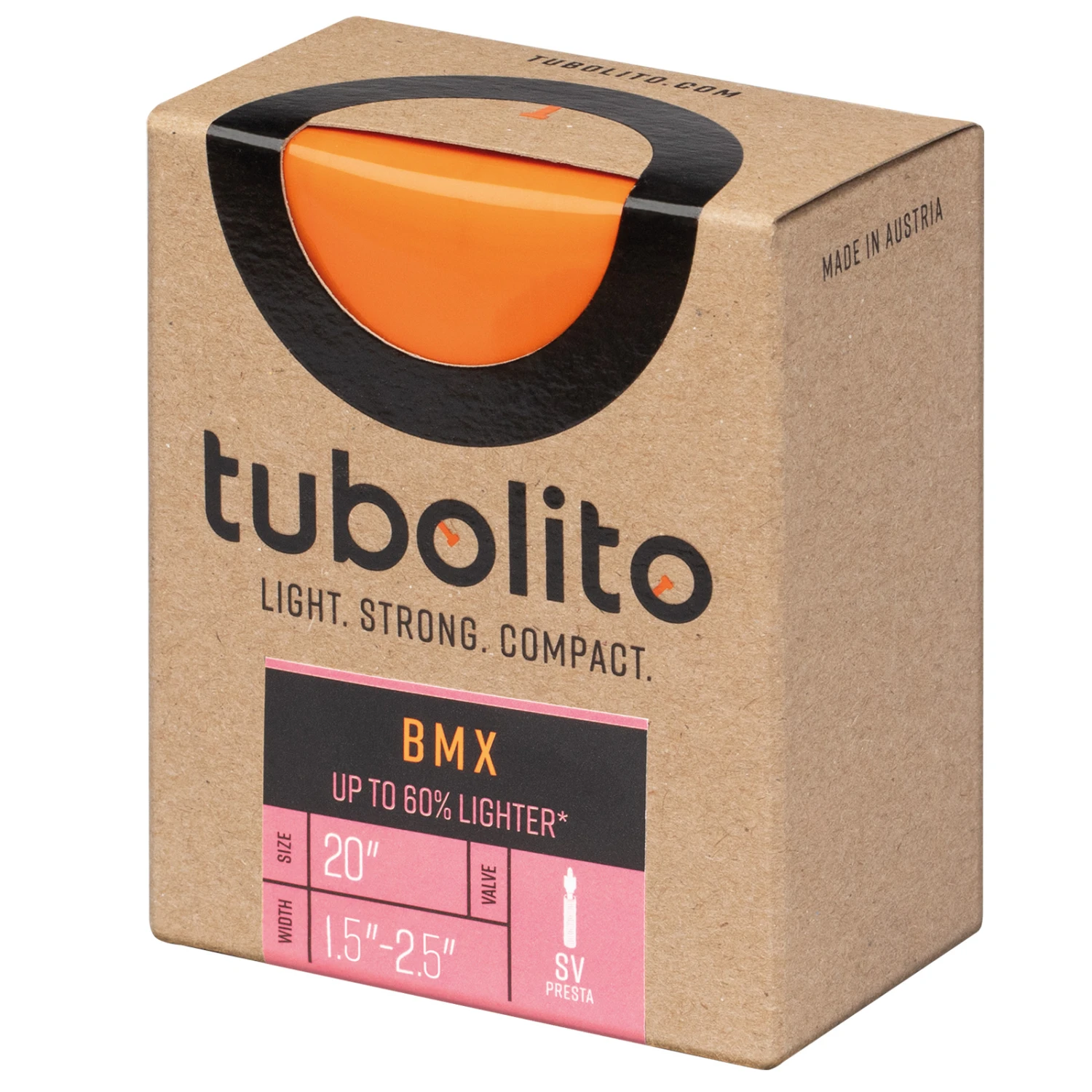 Hoger, 54% lichter en twee keer zo robuust in de naaldpriktest. Verpakkingsgrootte 50% kleiner dan klassieke producten. De Tubo-BMX verleidt je om naar grote hoogten te springen. Hij is geschikt voor 20 inch BMX-banden van 1,5″ tot 2,5″ breed. Verkrijgbaar met 42 mm presta ventiel.